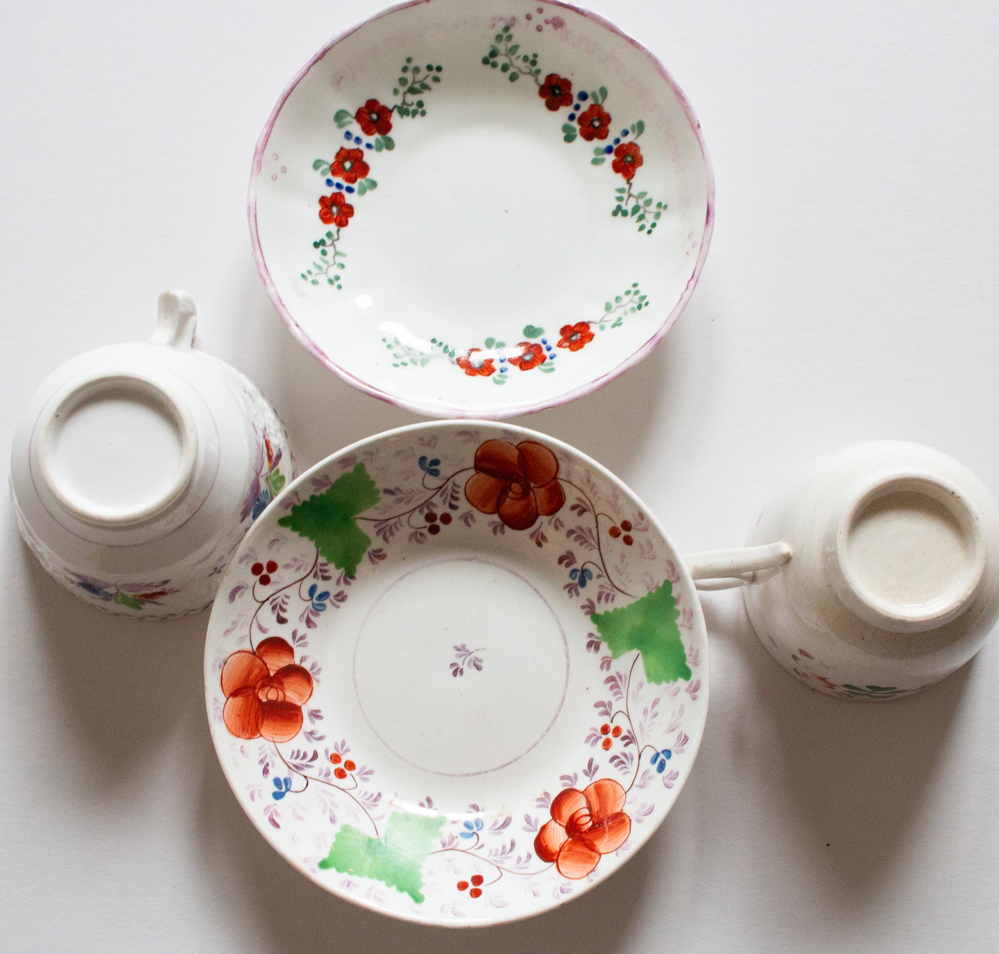 Antique Mismatched Teacups and Saucers (2)