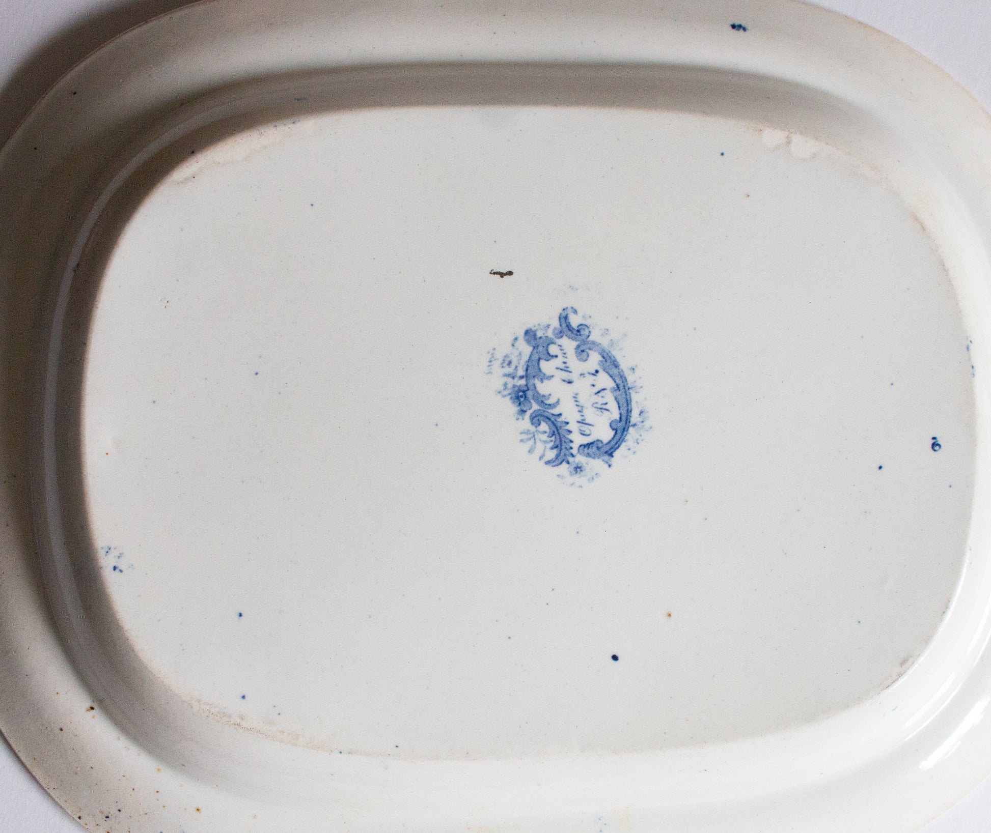A late nineteenth century blue and white transferware 'Opaque China' willow pattern platter. In good condition, some use and staining evident. Approx. 38 x 30 cm. Interested overseas buyers please enquire re: shipping options in the first instance as item weighs in excess of 2 kg.