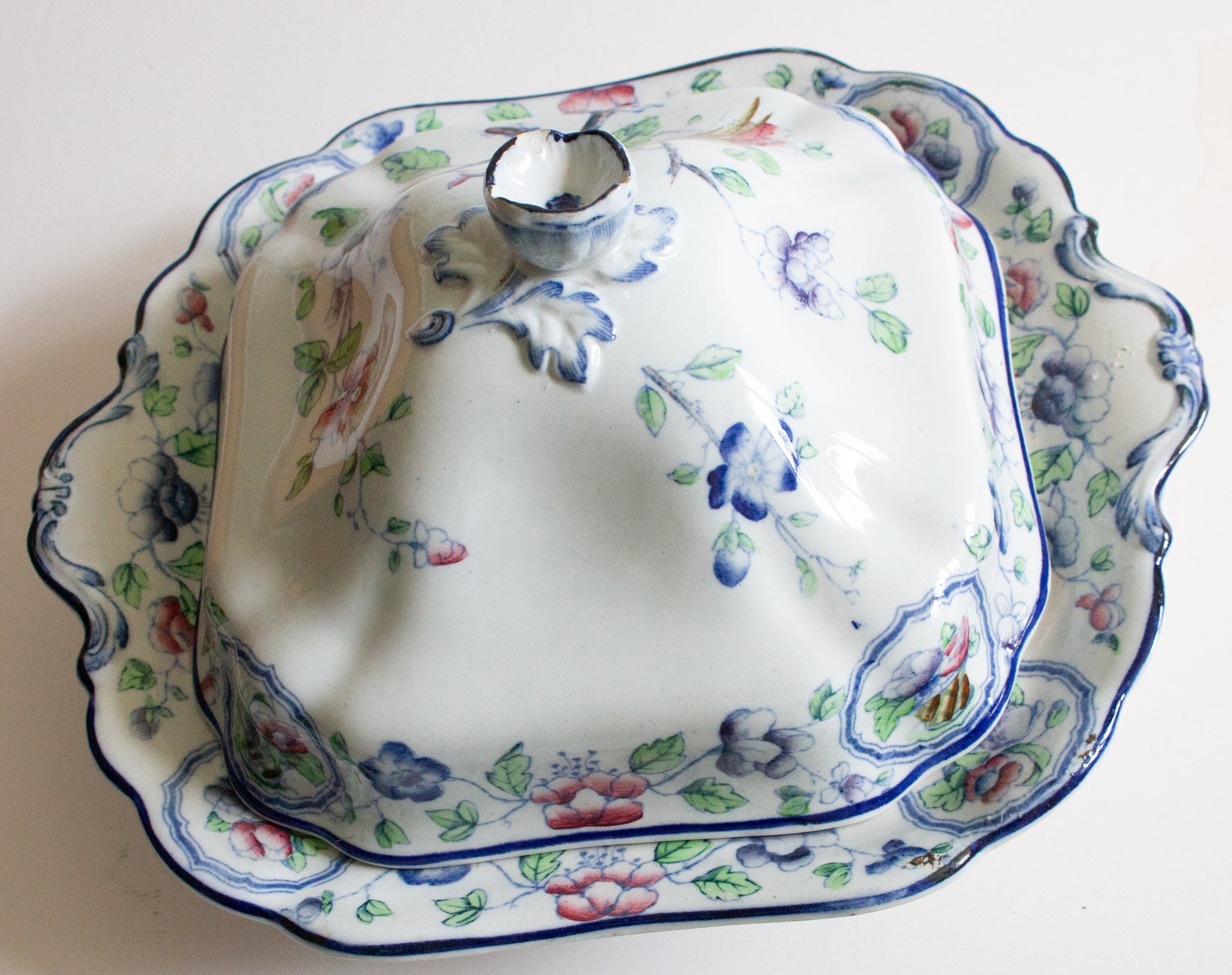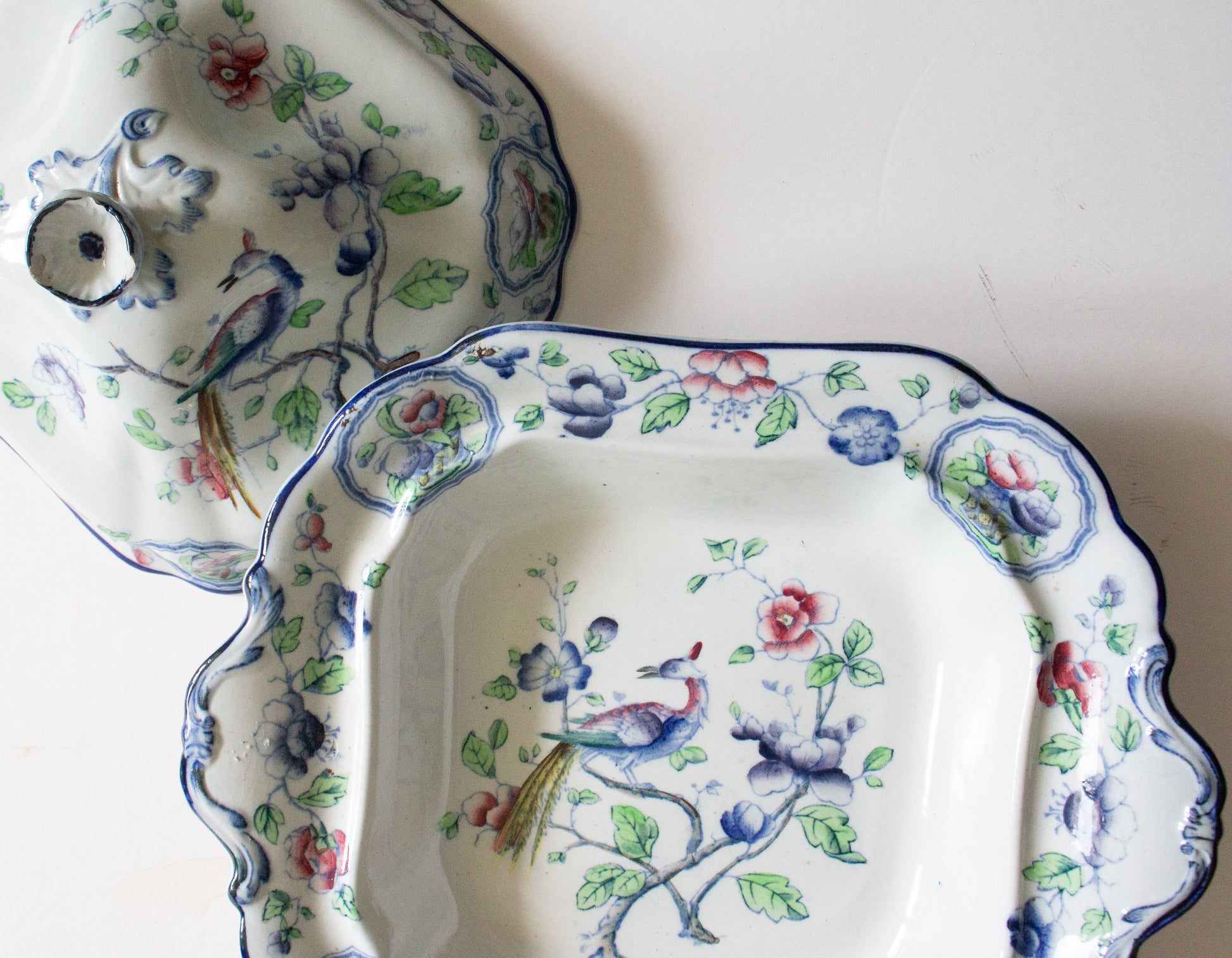 A Corona Ware S. Hancock & Sons 'Old Woodstock' pattern art deco era lidded tureen or serving dish with exotic birds motif. In good condition, some staining and crazing evident, chips to filial handle on lid (please refer to photographs). The base is approx. 29 x 25 cm, overall height with lid is approx. 18 cm. Interested overseas buyers please enquire re: postage options as item weighs in excess of 2 kg.