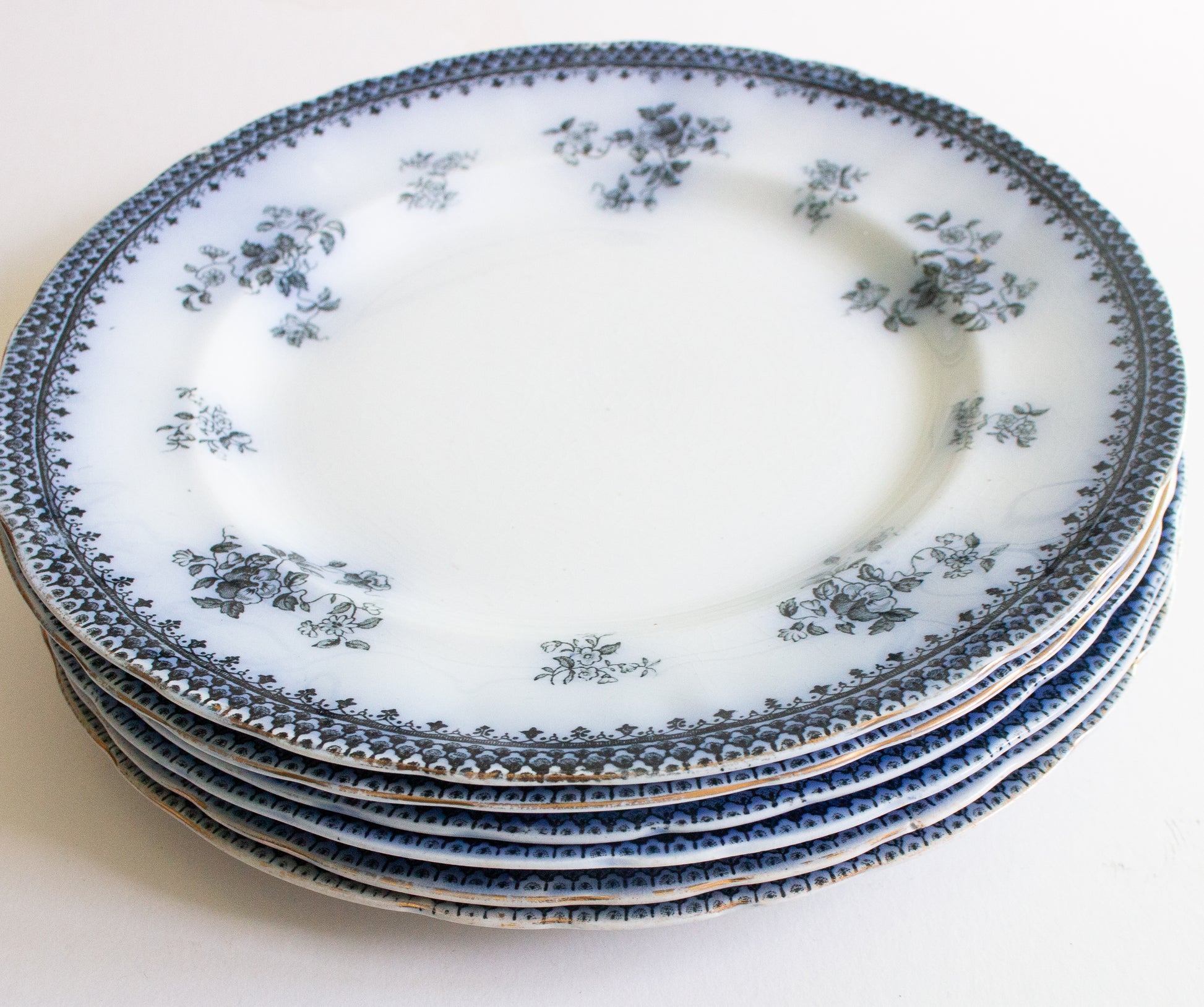 Burgess & Leigh Middleport Pottery Burslem England 'Florida' Pattern Flow Blue 9.75" Dinner Plates (4)