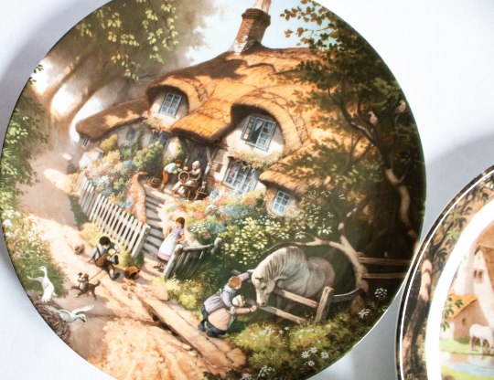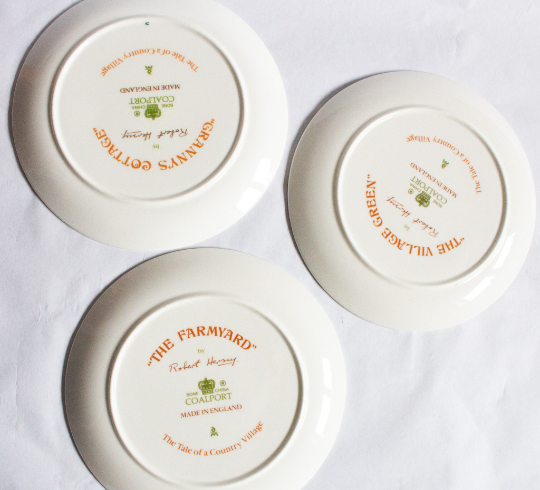 A set of three Coalport Bone China 'The Tale of a Country Village' series collector's display plates: 'Granny's Cottage'; 'The Farmyard'; and 'The Village Green'. In very good condition, occasional light wear. Approx. 21 cm in diameter. Interested non UK buyers please enquire re: shipping options in the first instance as item weighs in excess of 2 kg with packaging.