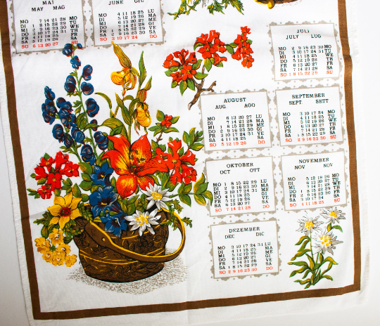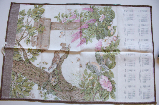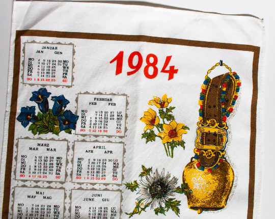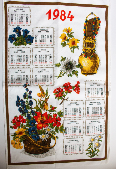Vintage 1984 Calendar Tea Towel with Floral Print