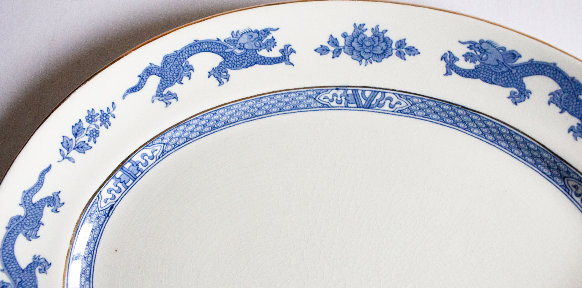 A George Jones & Sons 'Dragon' pattern blue and white transferware serving platter. In very good condition, some light use. Approx. 40 x 33 cm. Interested overseas buyers please enquire re: shipping options in the first instance as item weighs in excess of 2 kg.