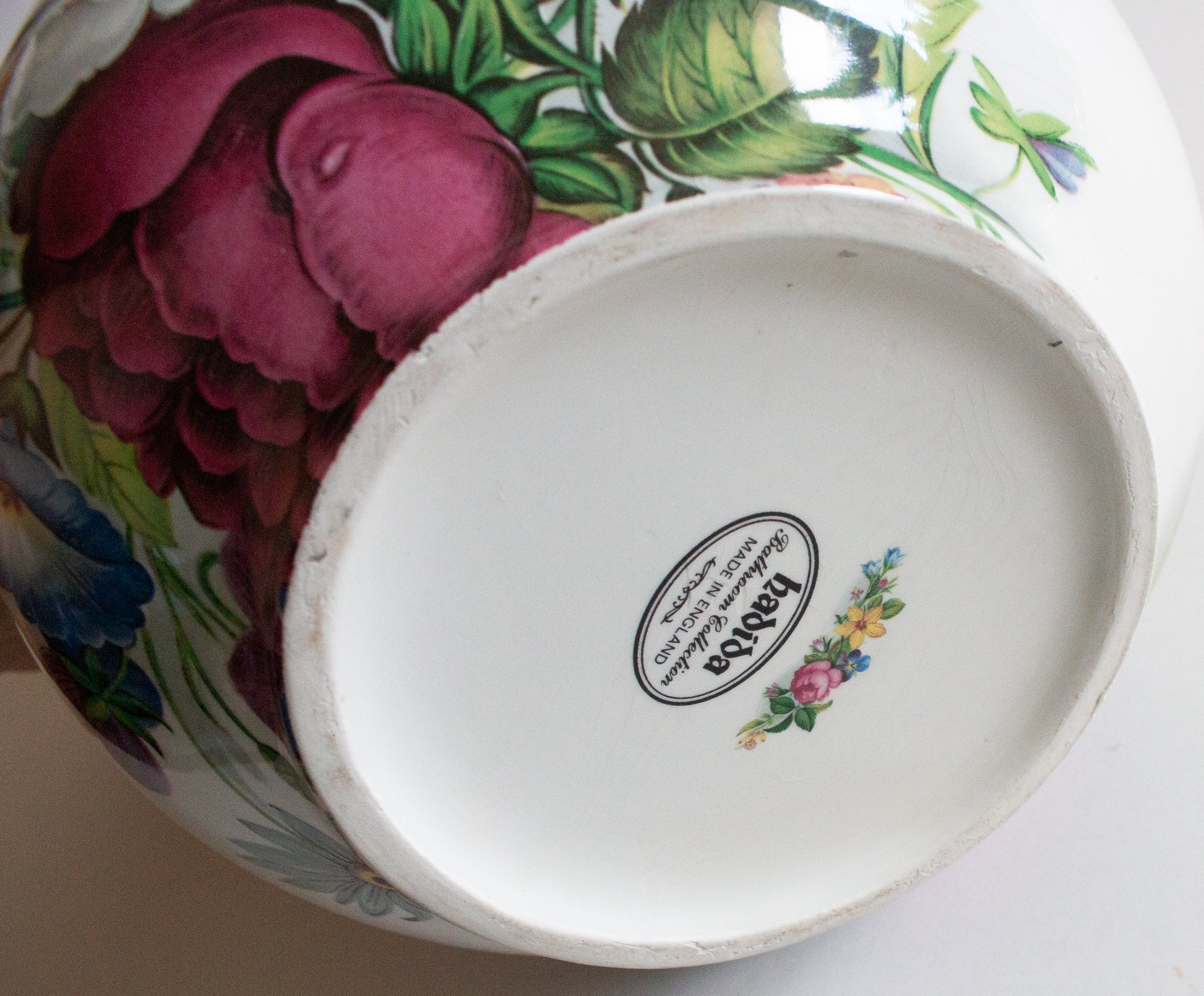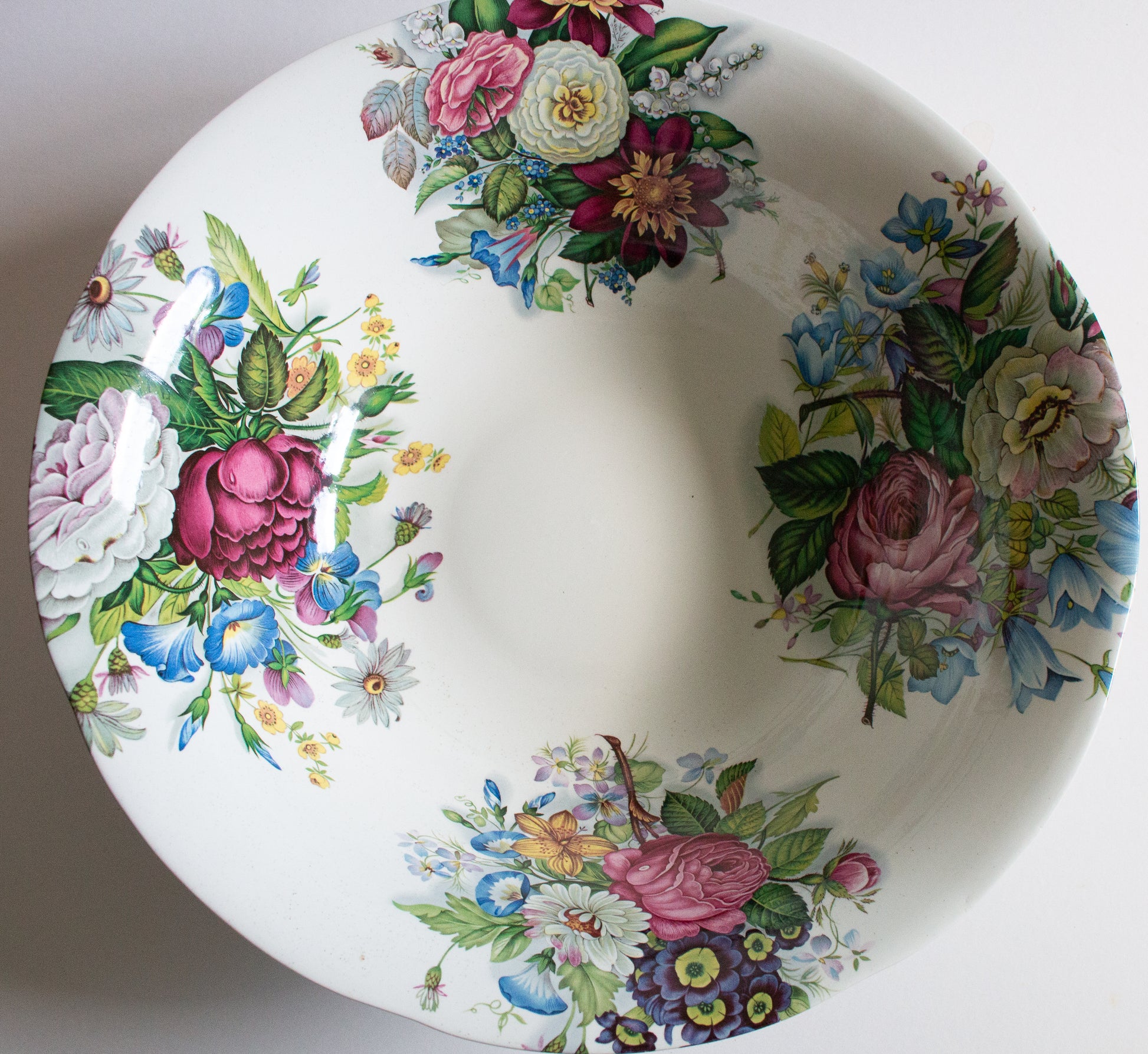A large vintage floral 'Hadida Bathroom Collection' wash jug and bowl. In good condition, some light wear. The bowl is approx. 41 cm across with depth of 13 cm, the jug is approx. 29 cm tall. Interested overseas buyers please enquire re: shipping options in the first instance as item weighs in excess of 2 kg with packaging.