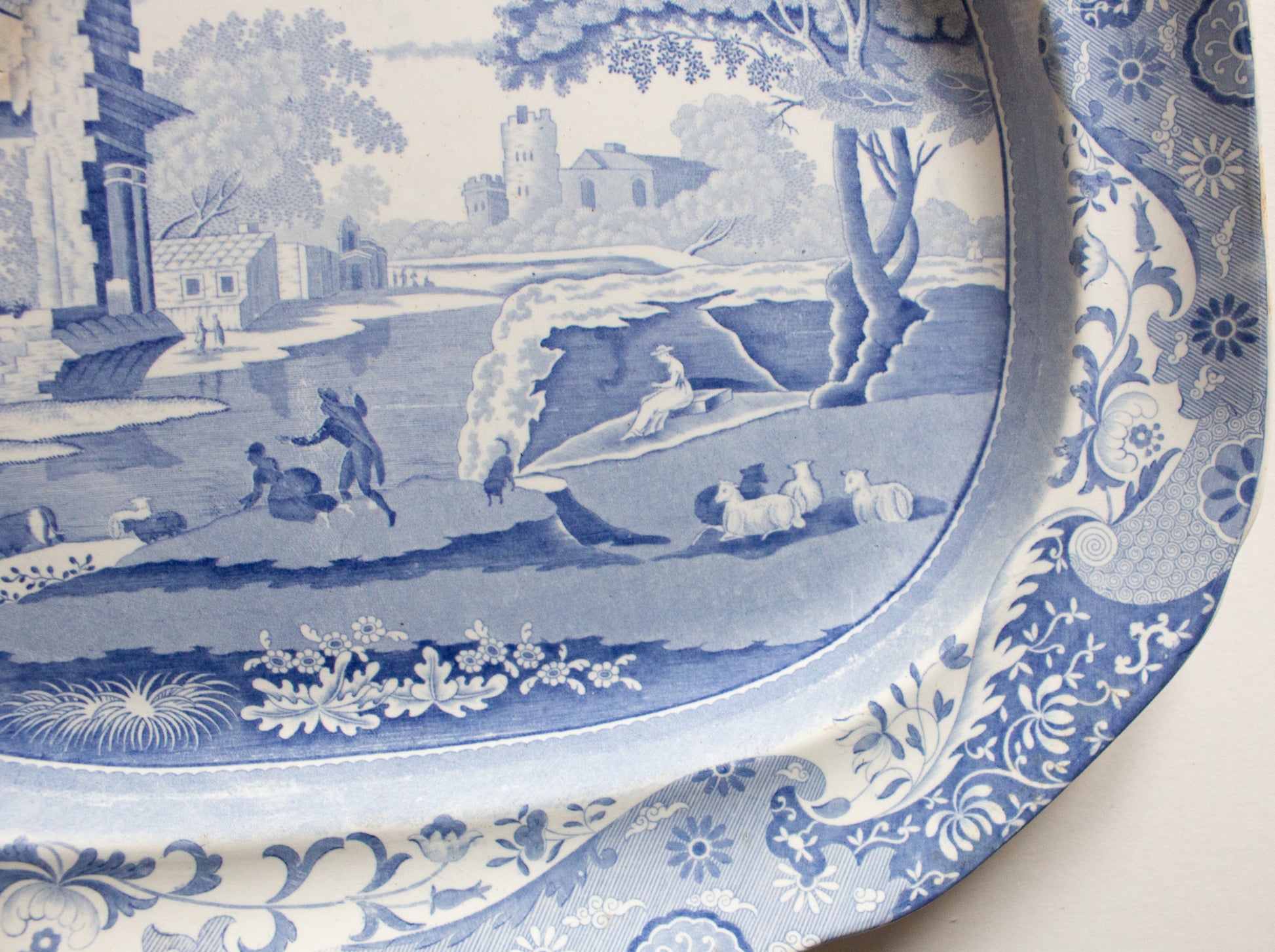 Large Antique 'Italian Ruins' Pattern 19" Blue and White Transferware Serving Platter