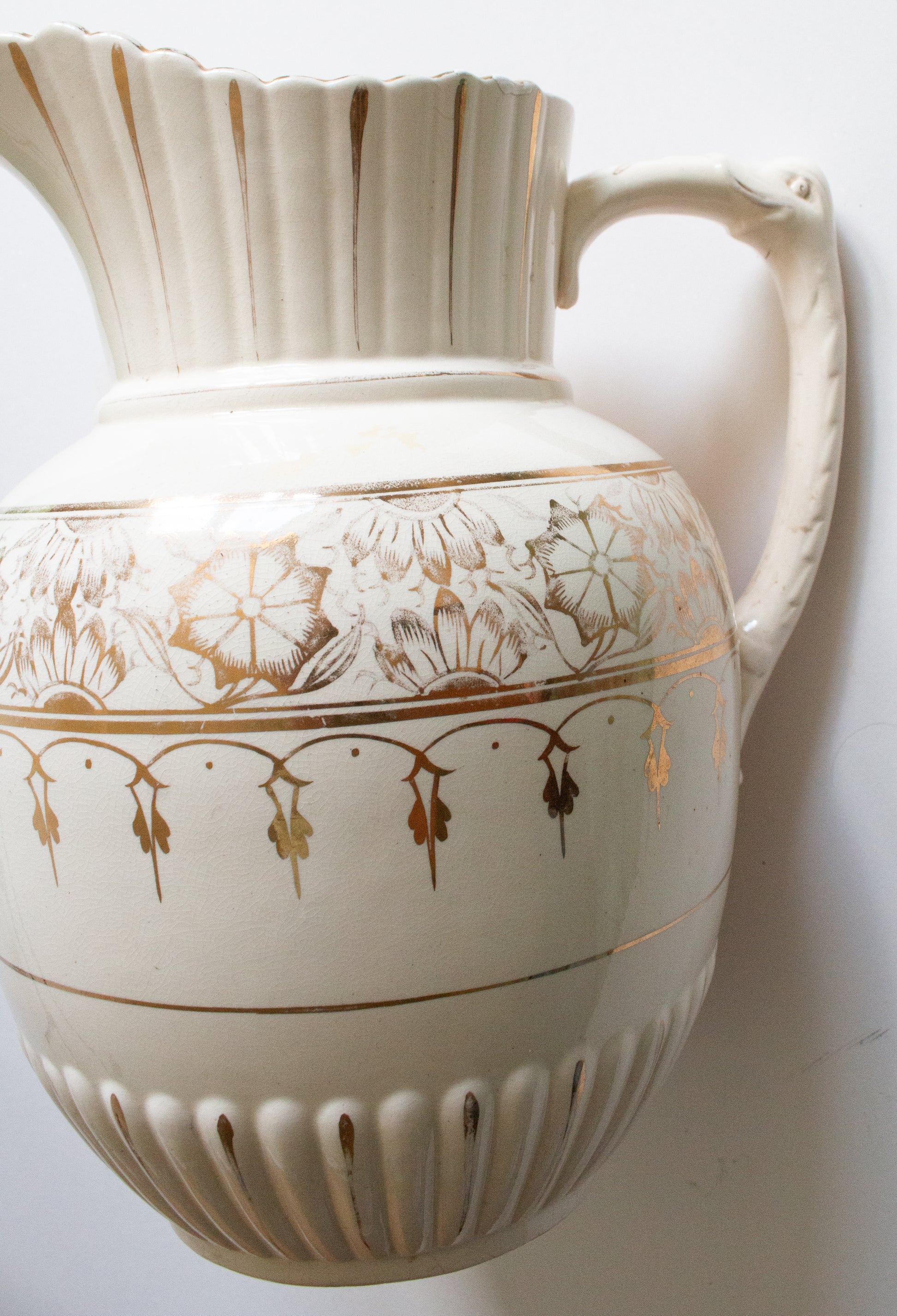 Large Antique White and Gold Wash Jug and Bowl