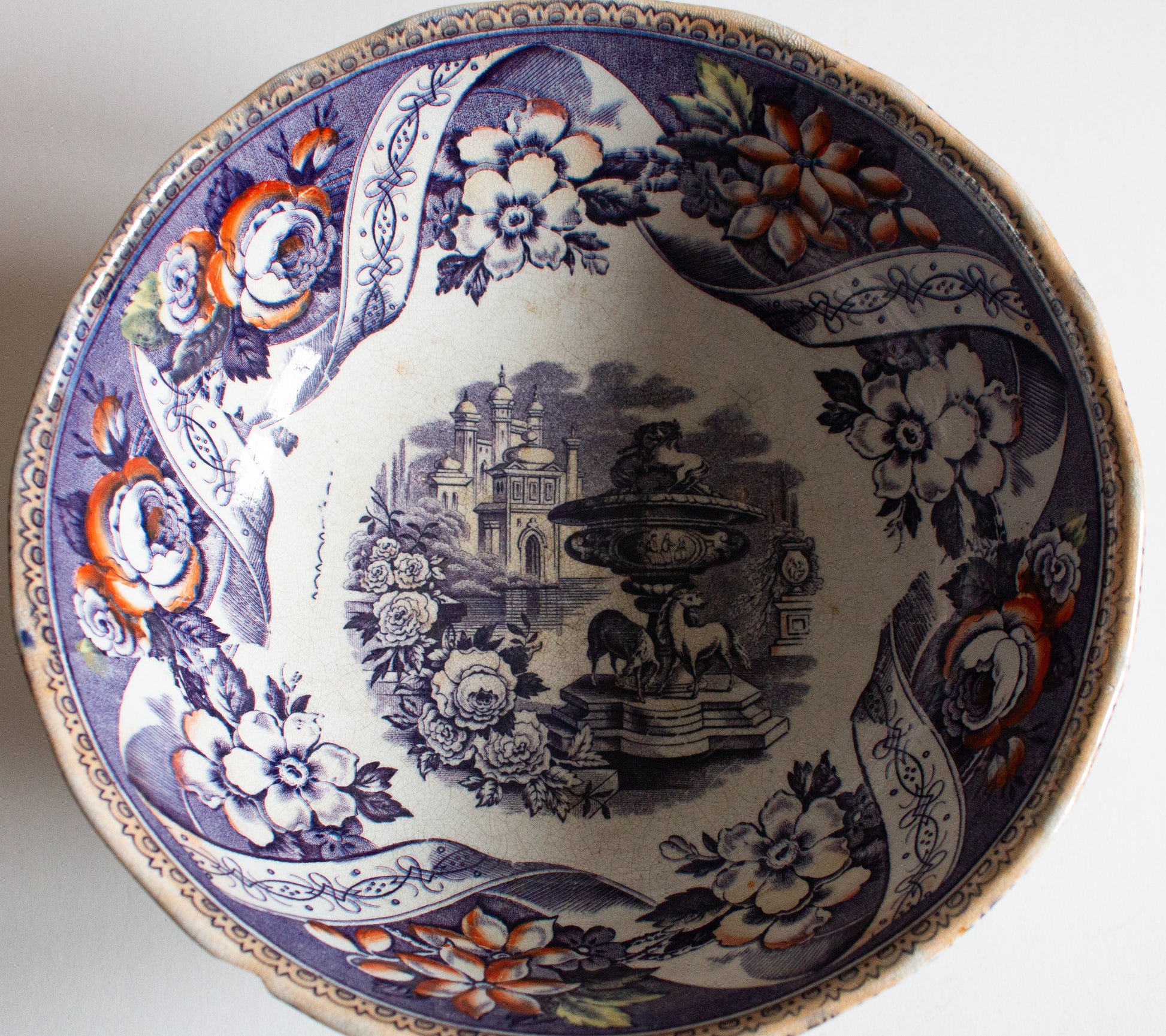 Large Footed Antique Transferware Serving Bowl with Classical Motifs