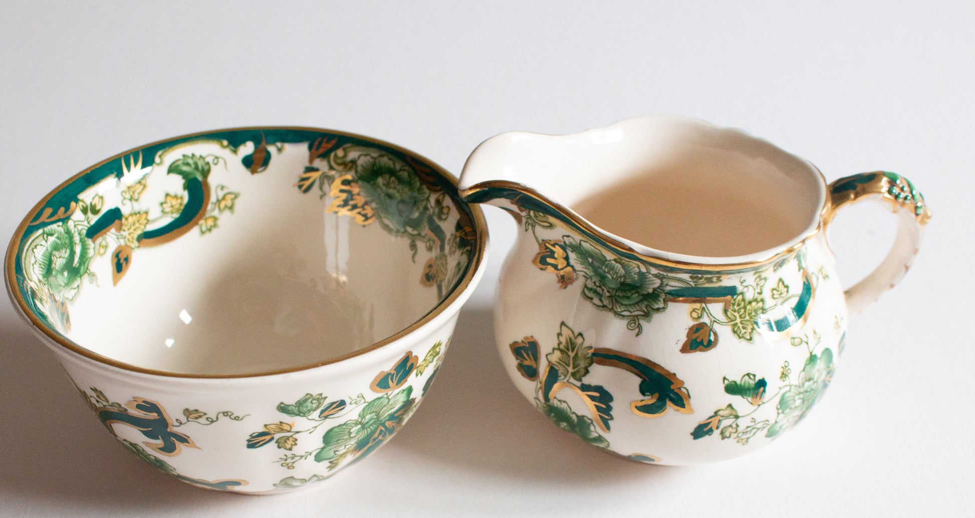 Mason's Ironstone 'Chartreuse' Pattern Sugar Bowl and Creamer Set