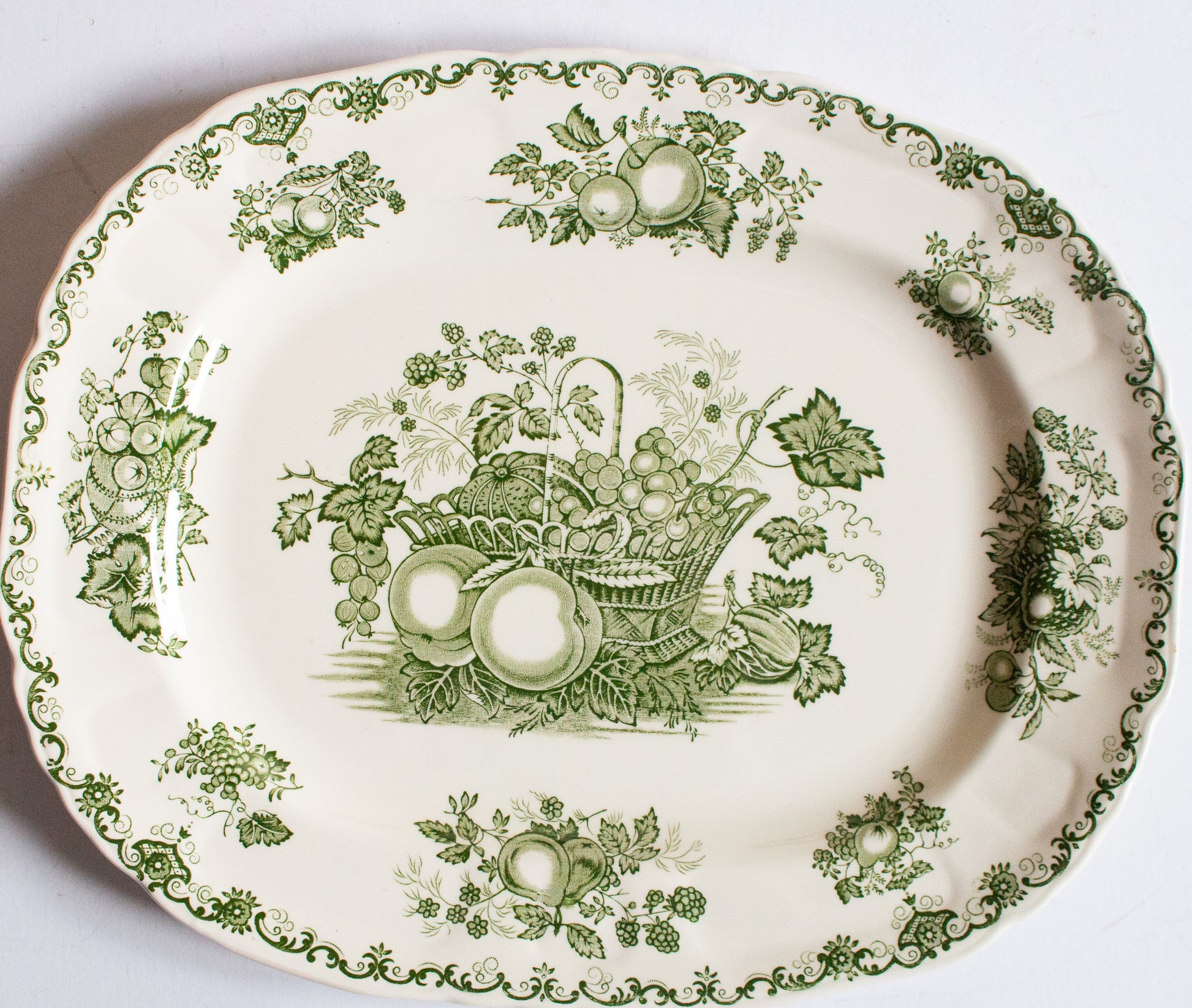Masons Ironstone 'Fruit Basket' Pattern Green and White Transferware Serving Platter
