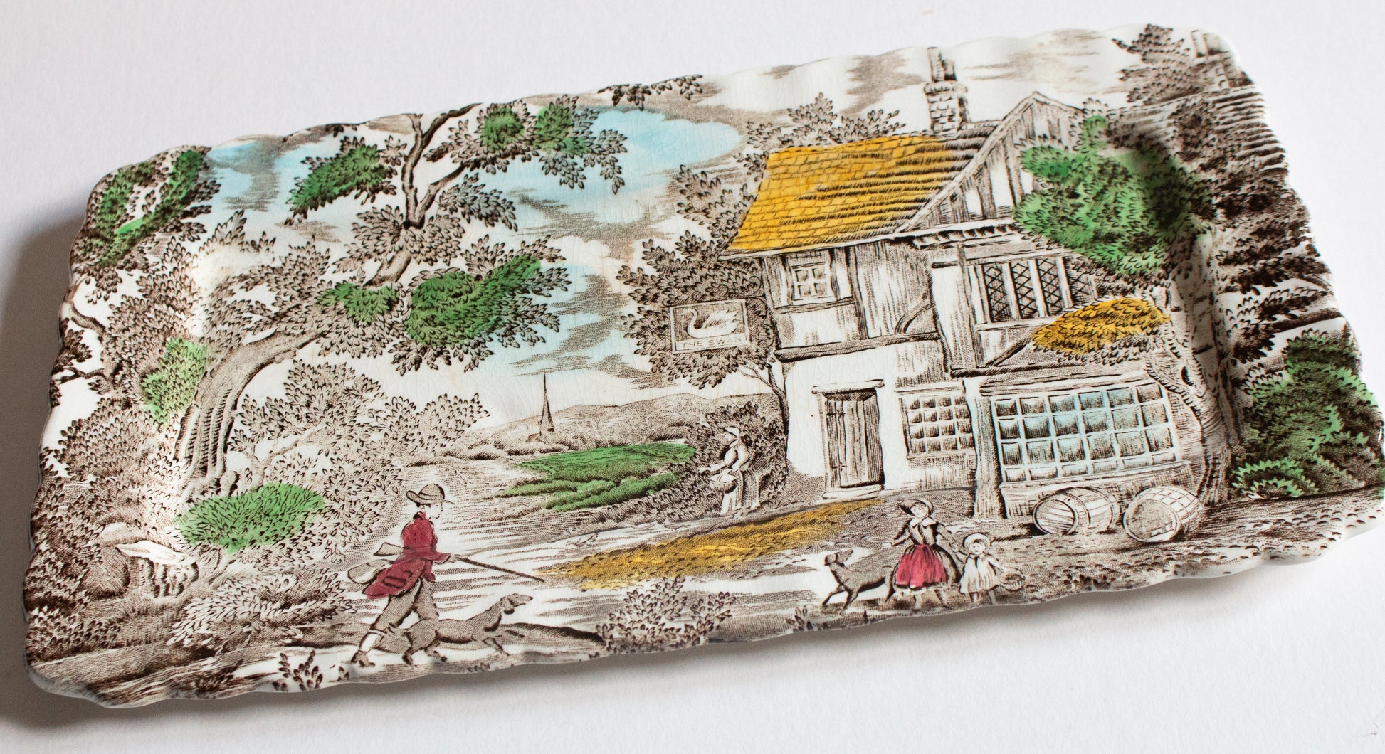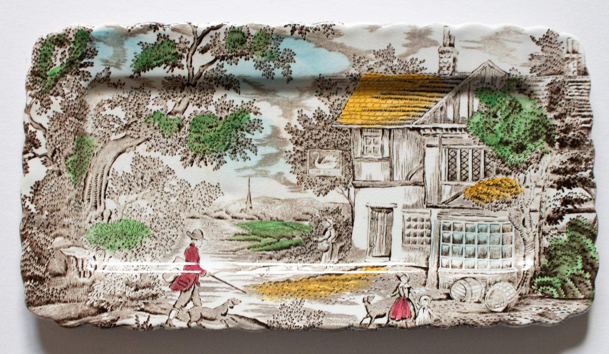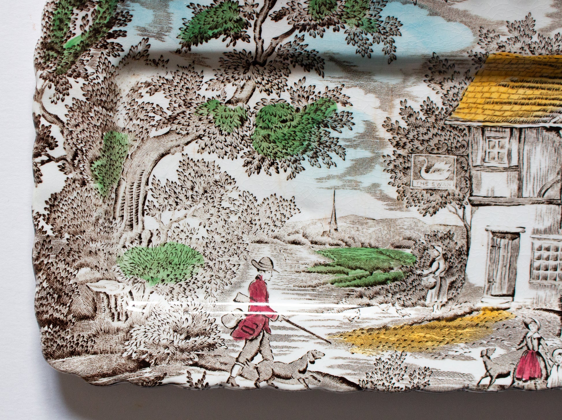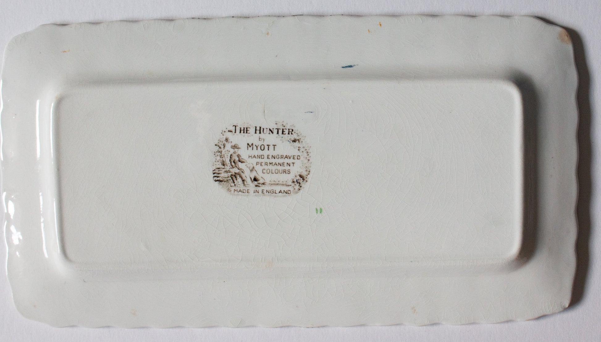 A Myott 'The Hunter' pattern brown and white rectangular sandwich serving platter. In good condition, crazing evident. Approx. Approx. 30.5 x 16 cm. Two available.