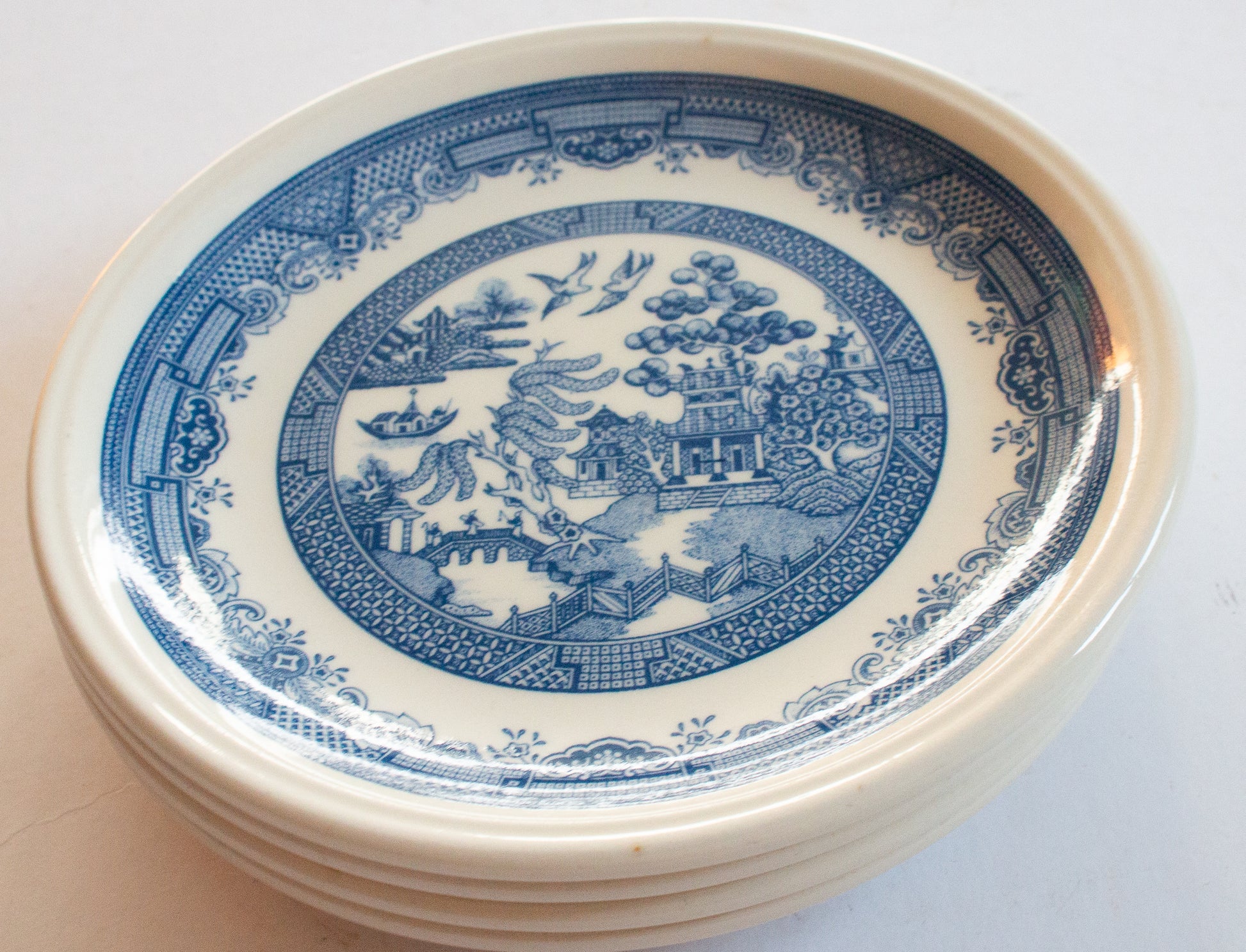 Staffordshire Tableware England Blue and White 'Willow' Pattern 6.5" Side Plates (4)