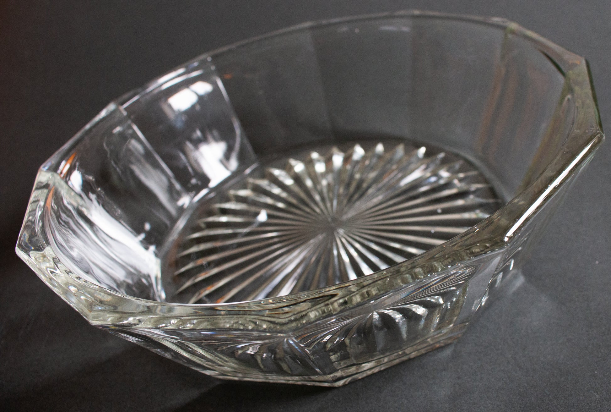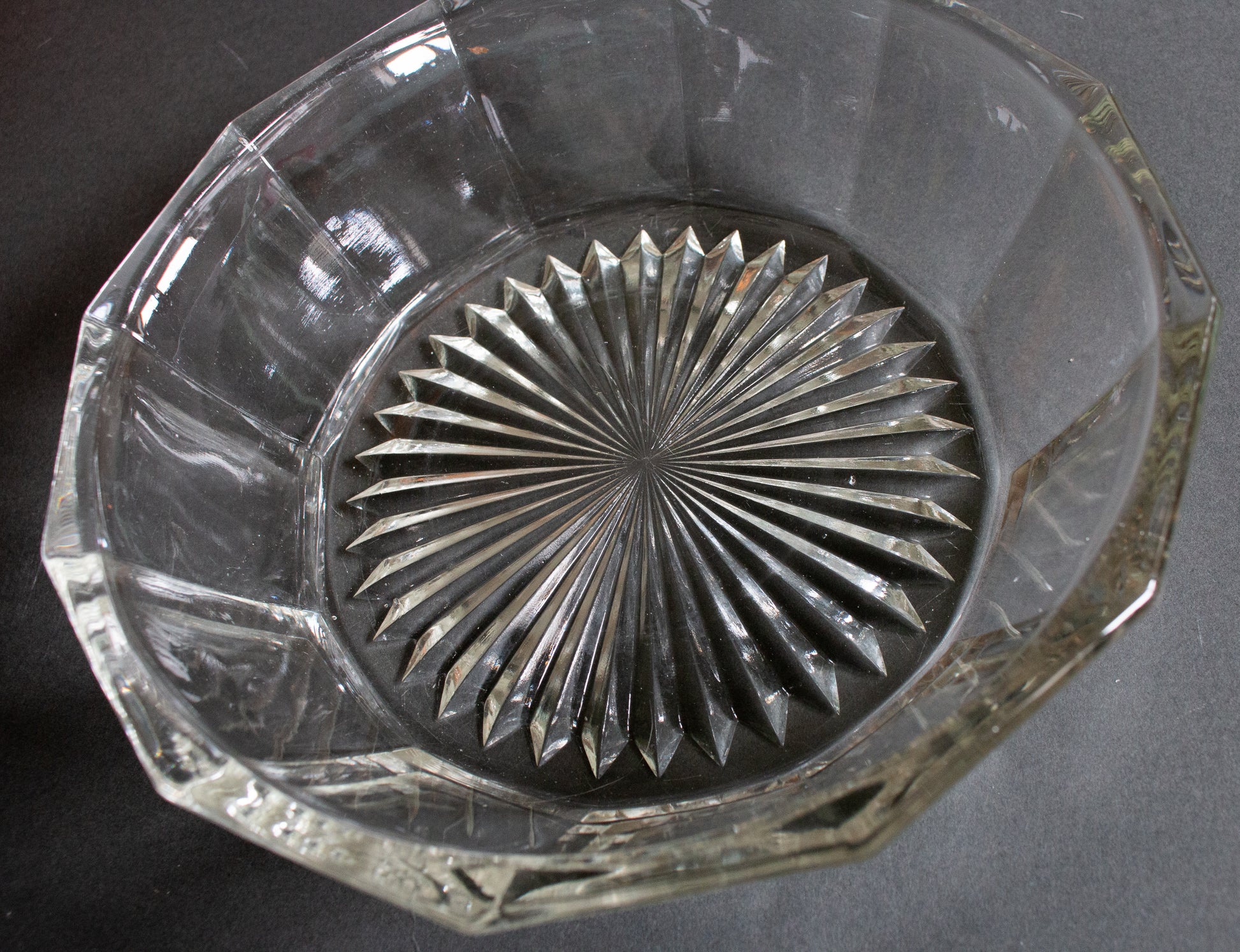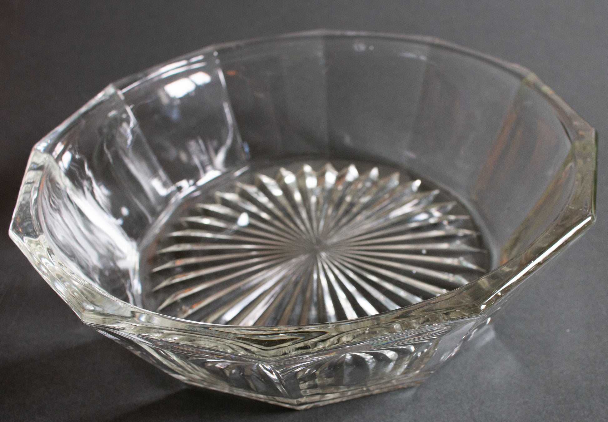 A good quality vintage glass bowl, with moulded details. In very good condition, light wear. Approx. 24 cm across with a depth of approx. 7 cm. Interested overseas buyers please enquire re: shipping options in the first instance as item weighs in excess of 2 kg.