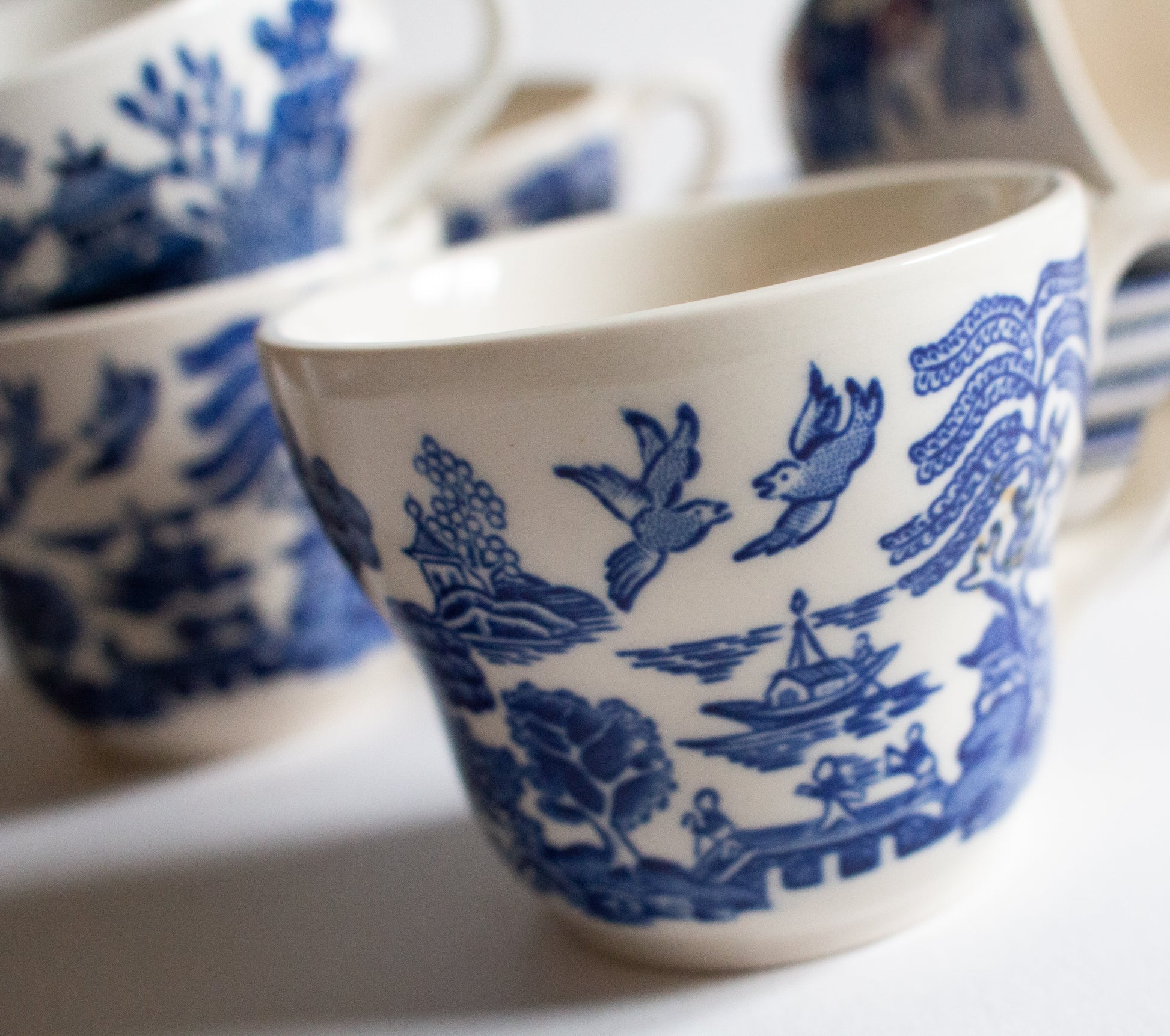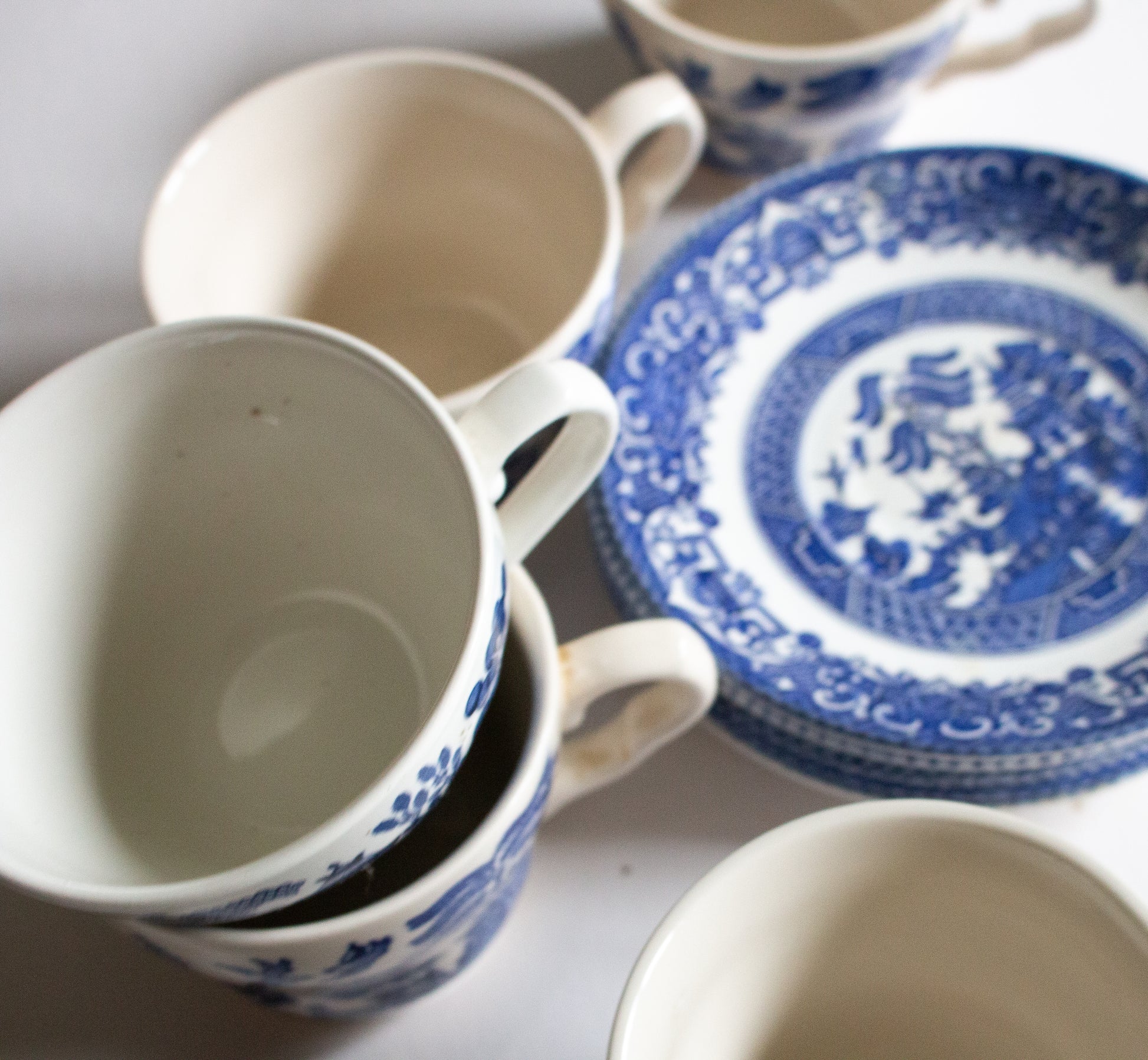 Vintage Mismatched 'Willow' Pattern Blue and White 'Willow' Pattern Teacups (5)